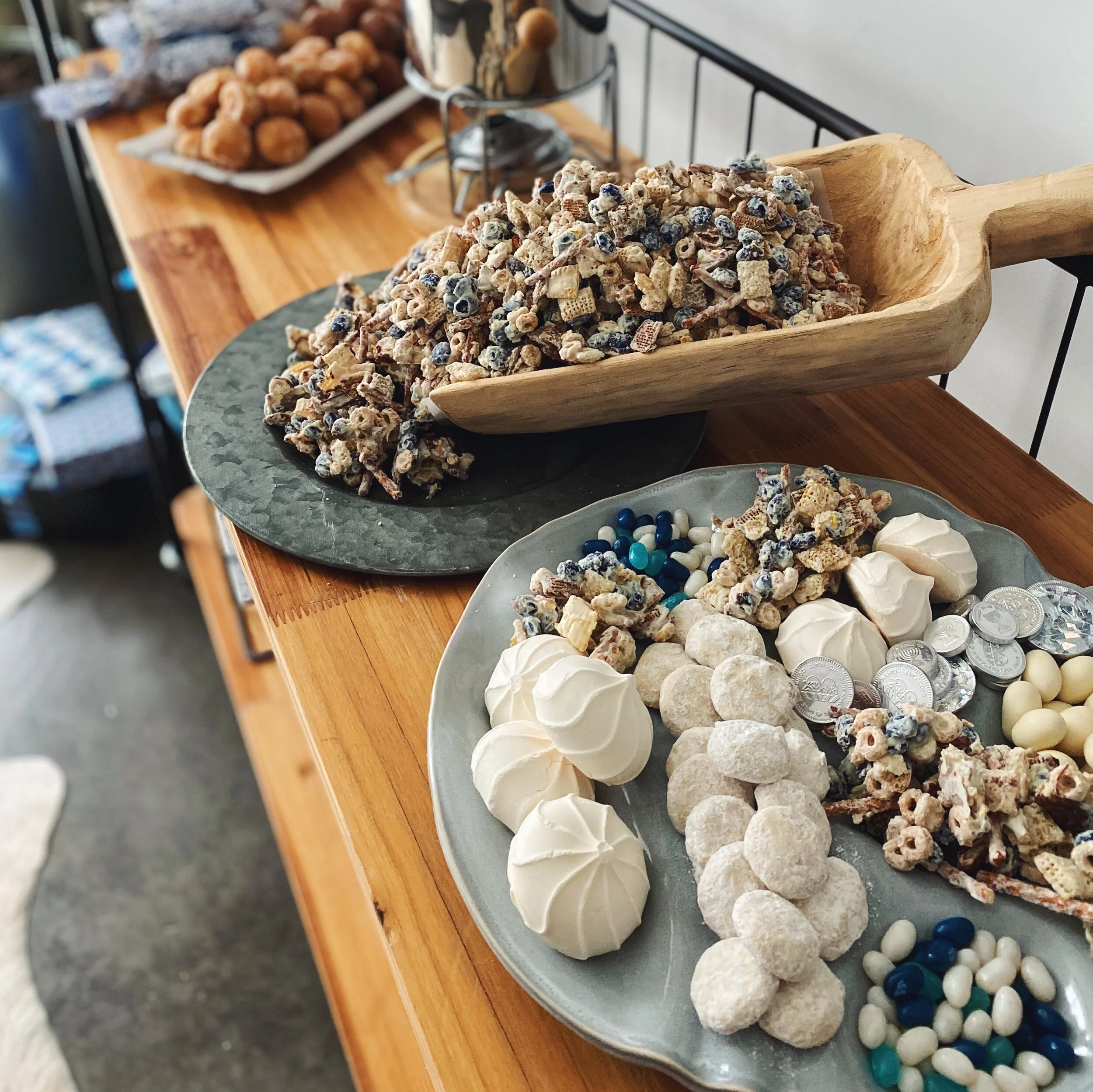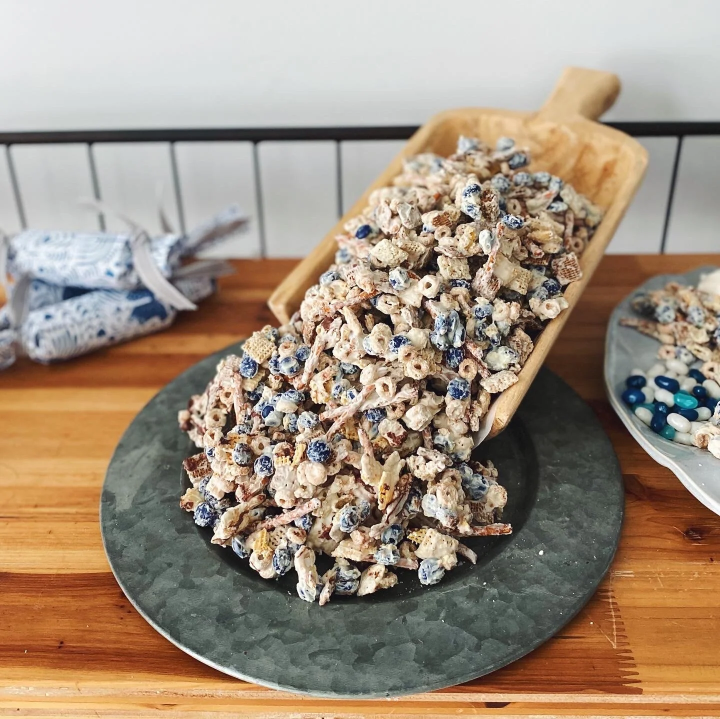 This sweet and salty snack, which only takes 10 minutes to make, showcases a combination of cheerios, rice chex, wheat chex, pretzel sticks, M&M’s and white chocolate. Add it to your dessert board, sprinkle it in small bowls around the house, package and gift to friends and neighbors—you can’t go wrong here!